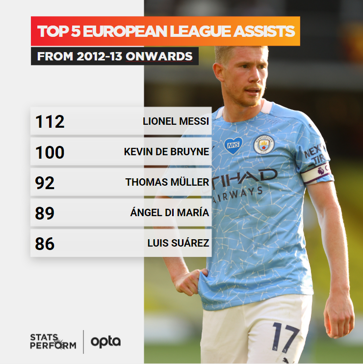 Optajoe On Twitter 100 Kevin De Bruyne S Most Recent Assist Against Watford Was His 100th In Europe S Top Five Leagues Since Leaving Genk Prior To The 2012 13 Season In This Time
